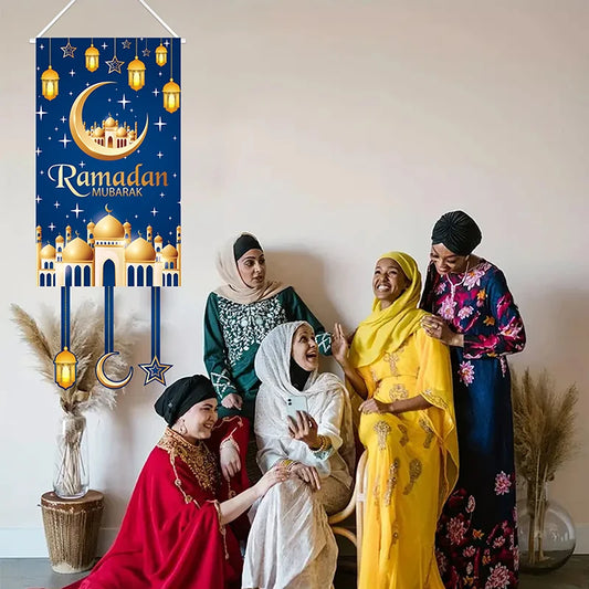 Home Ramadan Mubarak hangs flag, Islamic Muslim Party decorates home decor banner