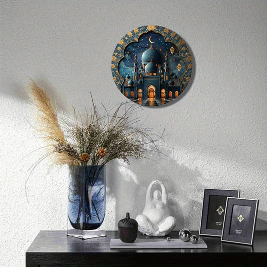 Round Aluminum Metal Eid Mubarak Sign, Ramadan and Umran Decorations, Room, Home, Garden, Perfect Housewarming, Holiday Gift