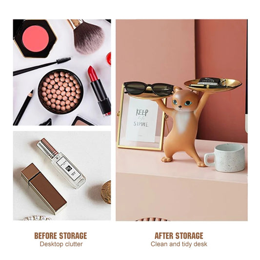Creative Cat Tray Resin Statue Bedroom Entrance Home Office Table Desk Decor Key Candy Container Storage Sculpture Figurines