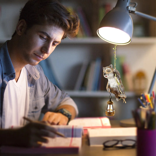 Solar Light Outdoor Statues Resin Raccoon Climbing On A L Vine With LED Waterproof Hanging Animal Figurine For Garden Wall Decor