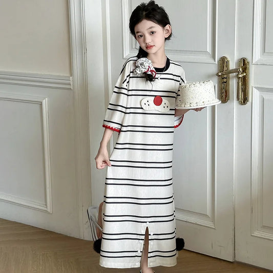 Girls Skirt Nightdress Summer Children Pajama Girls 2024 New Summer Women Thin Family Home Simple Casual Dress Children