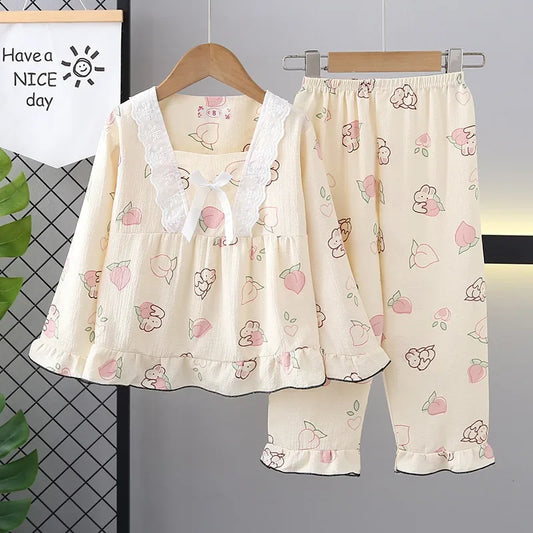 Summer Girls Pajamas set Cotton baby Kids Pyjamas lovely princess Sleepwear Child 3-15Y spring Pijama Night Wear Clothing Suits