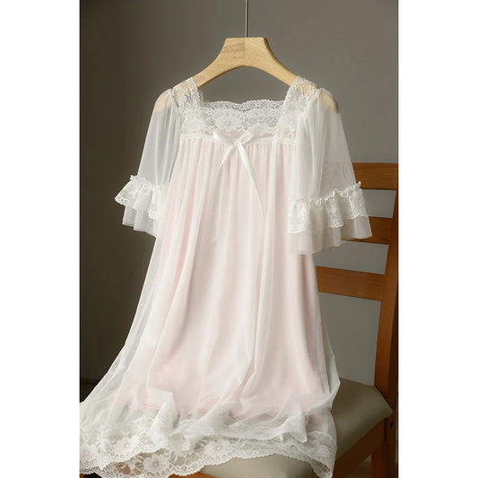 Baby Girl Princess Cotton Lace Night Robe Summer Toddler Teens Child Pajamas Dress Bow Baby Home Suit Child Clothes 3-14Y