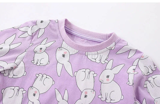New Girls Cute Bowknot Heart Cartoon Rabbit Pajamas Long Sleeve V-neck Sleepwear Kids Spring Summer Casual Clothing Sets Pyjamas
