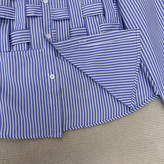 EBAIHUI Women Plus Size Shirt Long Sleeve Blue Hollow Out Polo Collar Blouse Loose Fashion Patchwork Female Shirts Chic Top New