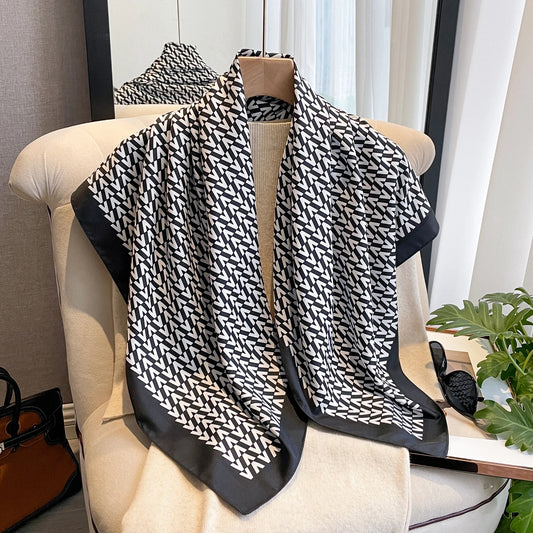 2025 Twill Silk Headband Hijab Square Scarf Print 90CM Warm Beach Stoles Shawl Wraps Female Hair Band Bag Wrist Bandana Foulard