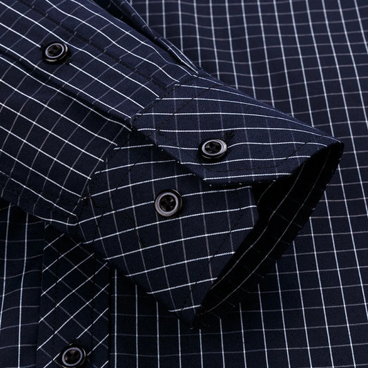 Men's Classic Standard-fit Plaid/striped Social Office Dress Shirt Single Patch Pocket Long Sleeve Formal Business Basic Shirts