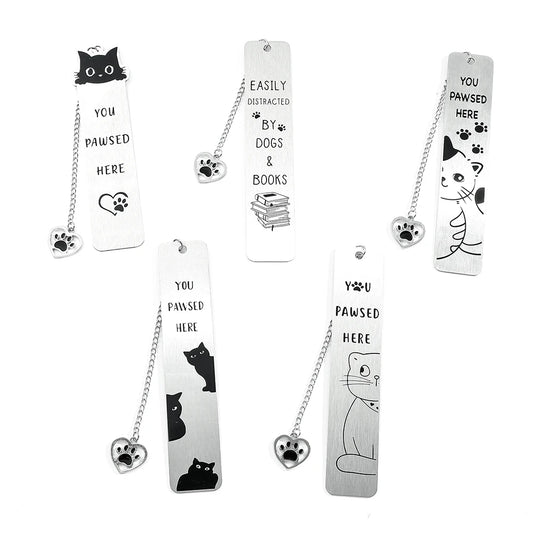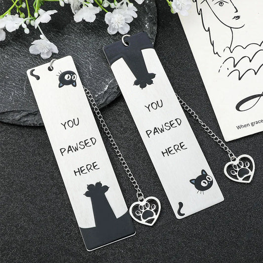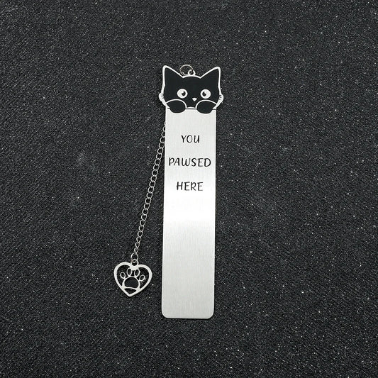Cute Cat Metal Bookmark,Funny You Pawsed Here Cat Stainless Steel Bookmarks with Tassel, Reading Supplies Gift for Cat Book Love