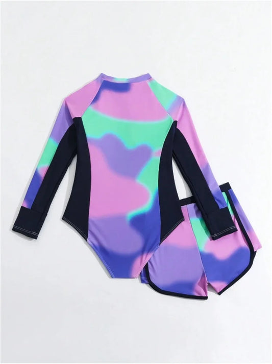 Purple Girls One Piece Swimsuit 8-12 Year Kids Swim Suit Teenage Children's Swimwear 2025 Sunscreen Beach Bathing Suits Shorts