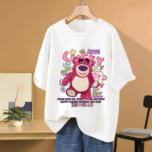Lotso Bear Cartoon Anime Women T-shirt Summer Short Sleeve Men Tee Shirts 100% Cotton 2025 New Fashion Couple Clothes Tops