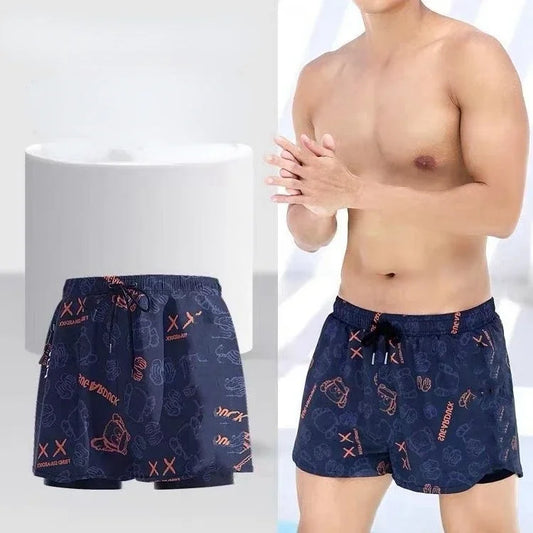 Summer Shorts Men Double Layer Beach Wear Surf Swimming Sportswear Fitness Loose Shorts Casual Trouser New Swimwear