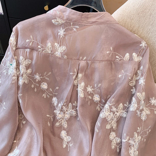 Plus size Women's dress Summer Casual Chiffon shirt Loose and comfortable Chinese style cardigan top Light and breathable