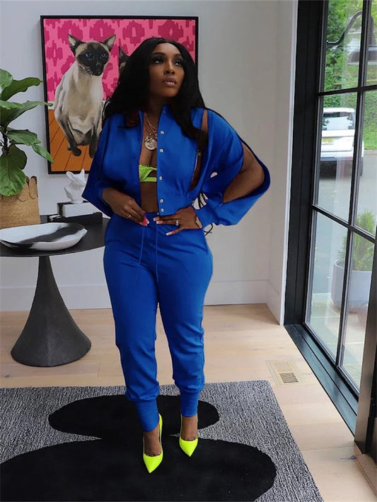 Streetwear 2 Piece Sets Women Outfit Spring Clothes 2025 Women Zip Up Hollow Out Jacket Top and Pant Sets Two Pieces Sweatsuits