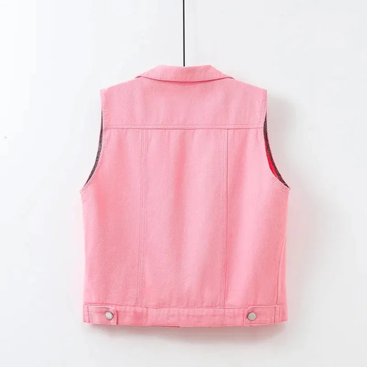 2025 clothes New Vintage Hole Sleeveless Jean Waistcoat Short Jacket Female Outerwear Spring Autumn Denim Vest Women Clothes