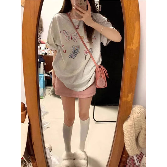 2025 New Arrival clothes Simple Style Women's Summer Loose Casual Round Neck Niche Top T-Shirt Print Butterfly Ladies Clothes T-shirts