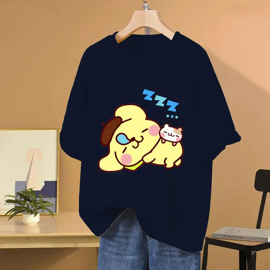 Clothes Pompom Purin Yellow Cartoon Anime Women T-shirt Summer Short Sleeve 100% Cotton Men Tee Shirts Tops 2025 Fashion Couple Clothes