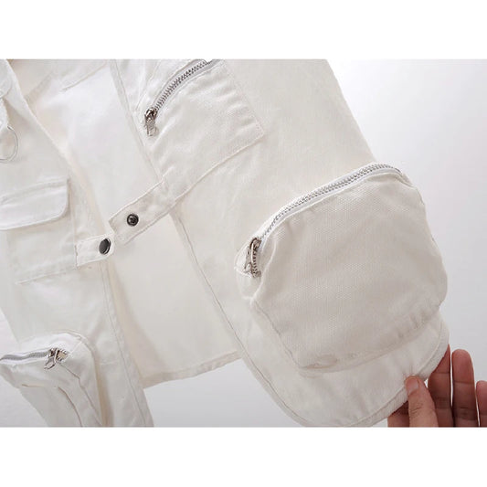 Summer Korean clothes White Denim Vest Women Cardigan Waistcoat Loose Short Big Pocket Sleeveless Jacket Jeans Vests Female Streetwear