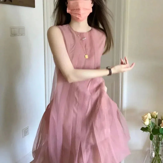 2025 Spring Autumn Fashion clothes O Neck Women's Clothing Sleeveless All Match Sweat Solid Chiffon Female Clothes Korean Style Dresses