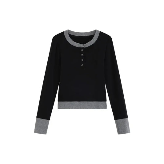 Winter Women Slim Fit Fake Two-Piece Design Long Sleeve T-Shirt Short Cropped Base Top Elegant Petite Style Casual Inner Wear clothes