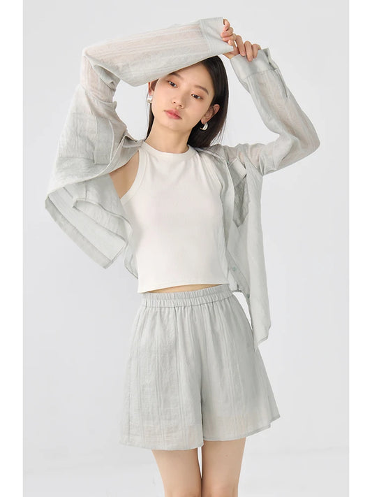 ZIQIAO Petite Hooded Sunscreen Shirt Women's 2024 Summer New Off Shoulder Long sleeved Breathable Casual Top clothes