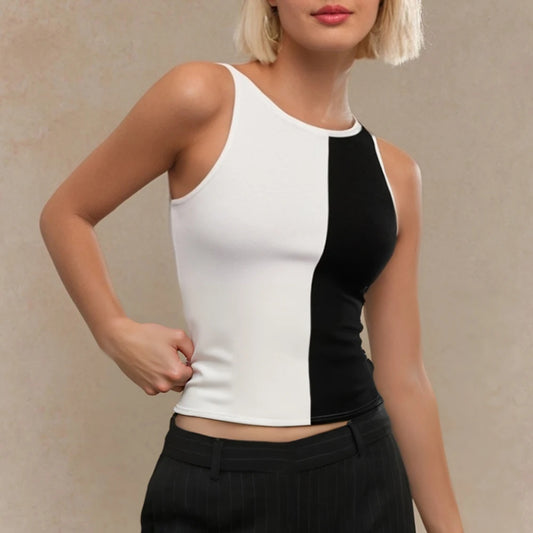 Mia Muse Women's Tanks All Seasons Korean Contrast Color Sleeveless Round-Neck Petite Casual Tanks & Camisoles