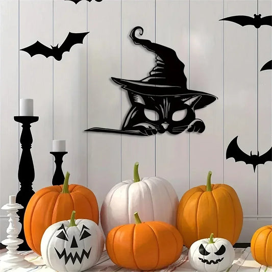 metal iron Black Cat Halloween Home Decor, Metal Cat Silhouette Yard Signs Garden Patio Party Decorations Wall Hanging Decor Ba