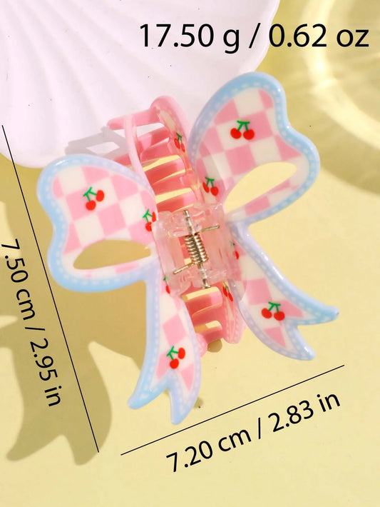 Cute Sweet Colorful Stripes Flowers Cherry Bow Clip for Women Girl Hair Claws HUANZHI 2024 NEW Y2k Hair Clip