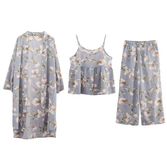 3 Pieces Women Japan Kimono Pajamas Cotton Sleepwear Pijama Soft Home Clothing Floral Printing Sleep Lounge Pyjama Pyjamas Set