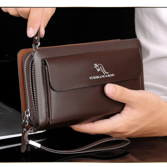 Men'S Clutch Bag PU Leather Zipper Wallet Passcard Fashion Luxury Handbag Square Holder Phone Pouch Hand Porter Bag Clutch Male
