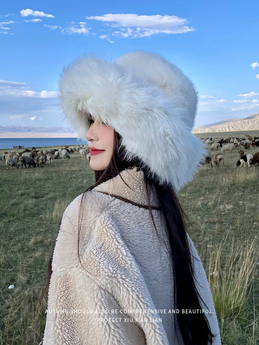Verdickte, mit Fleece gefütterte Wintermütze für Damen mit großem Kopfumfang