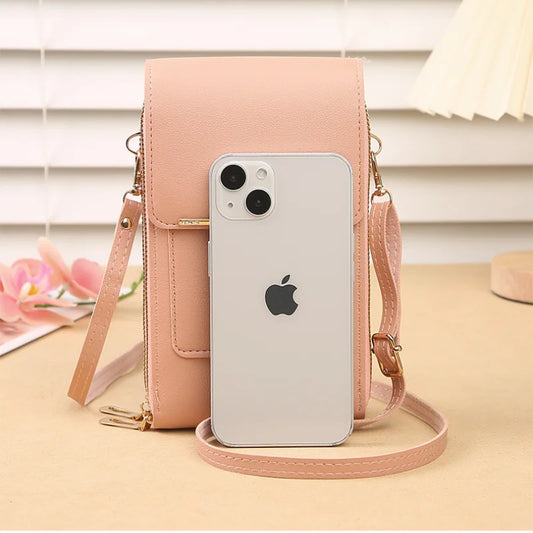 Women Fashion Touch Screen Lock Cell Phone Bag Women's Mobile Phone Card Holder Crossbody Shoulder Bag Money Pockets Small Bags