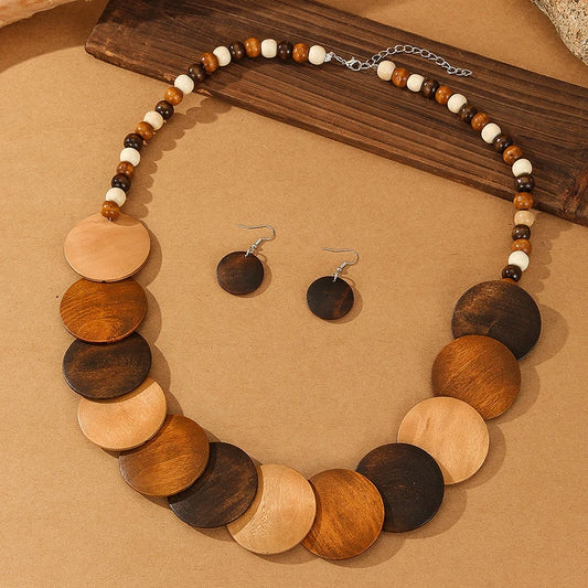 1set Vintage Wood Necklace African Wedding Party Dress Wooden Beads Necklace Earring Jewelry Sets For Women Party Gifts