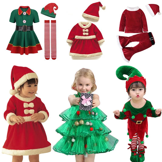 Neujahr Kinder Weihnachtsmann Kleinkind Baby Rot Weihnachtskleidung Party Rot Kleid Set für Kinder Weihnachtskostüm Weihnachtsmann Set