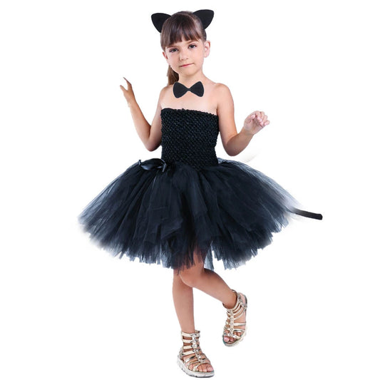 Süße schwarze Katze Tutu Kleid Baby Mädchen Geburtstag Kleider Kleinkind Kinder Halloween Kostüme Kinder Tier Cosplay Outfit Solid Black