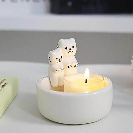 Kitten Candle Holder Cute Cat Candlestick Creative Aromatherapy Candle Holder Durable High Tempe Cartoon Candlestick Decoration