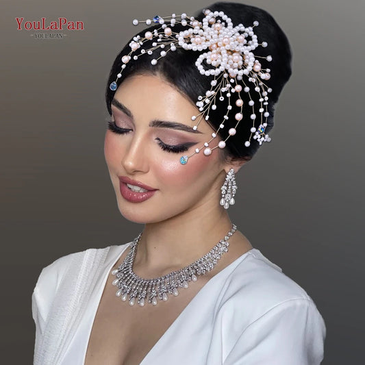 YouLaPan Wedding Headpiece Faux Pearl Headband Bridal Hair Accessories Rhinestone Headdress Alloy Leaf Hair Decoration HP680