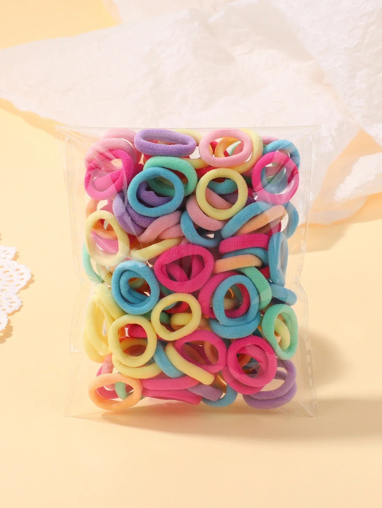 100Pcs/Set Elastic Hair Bands Girls Hair Accessories Mini Colorful Nylon Headband Kids Ponytail Holder Scrunchie Ornaments Gift