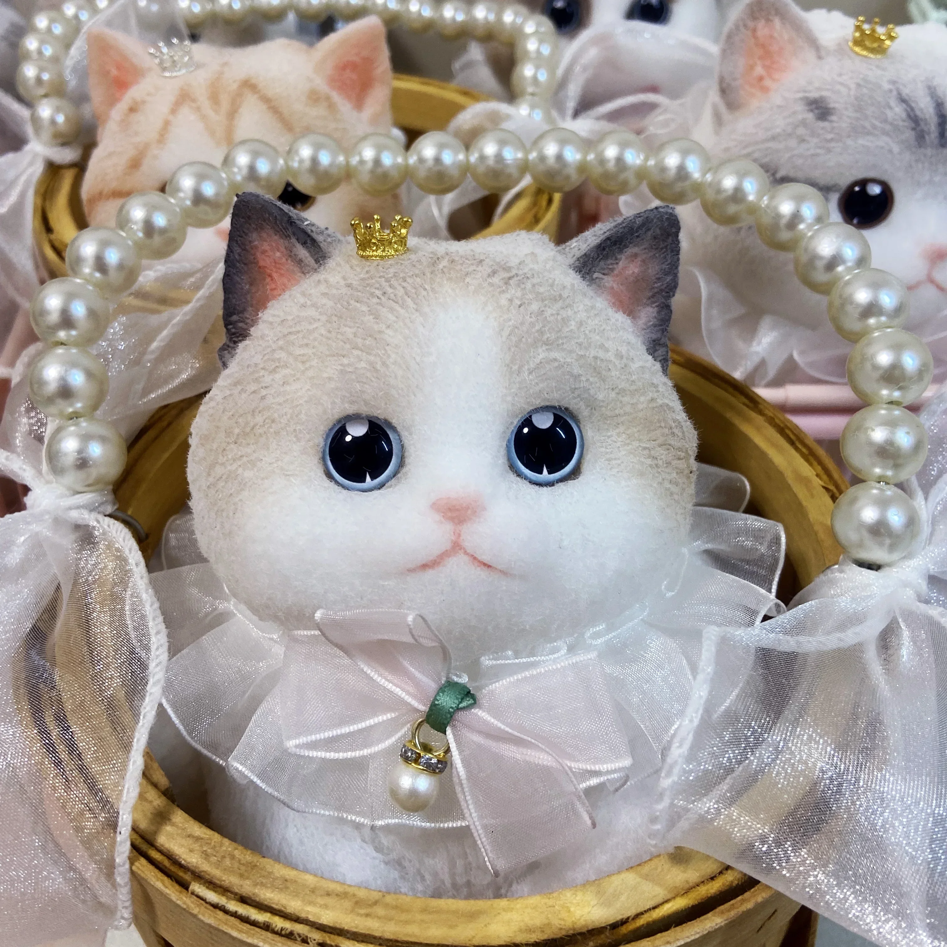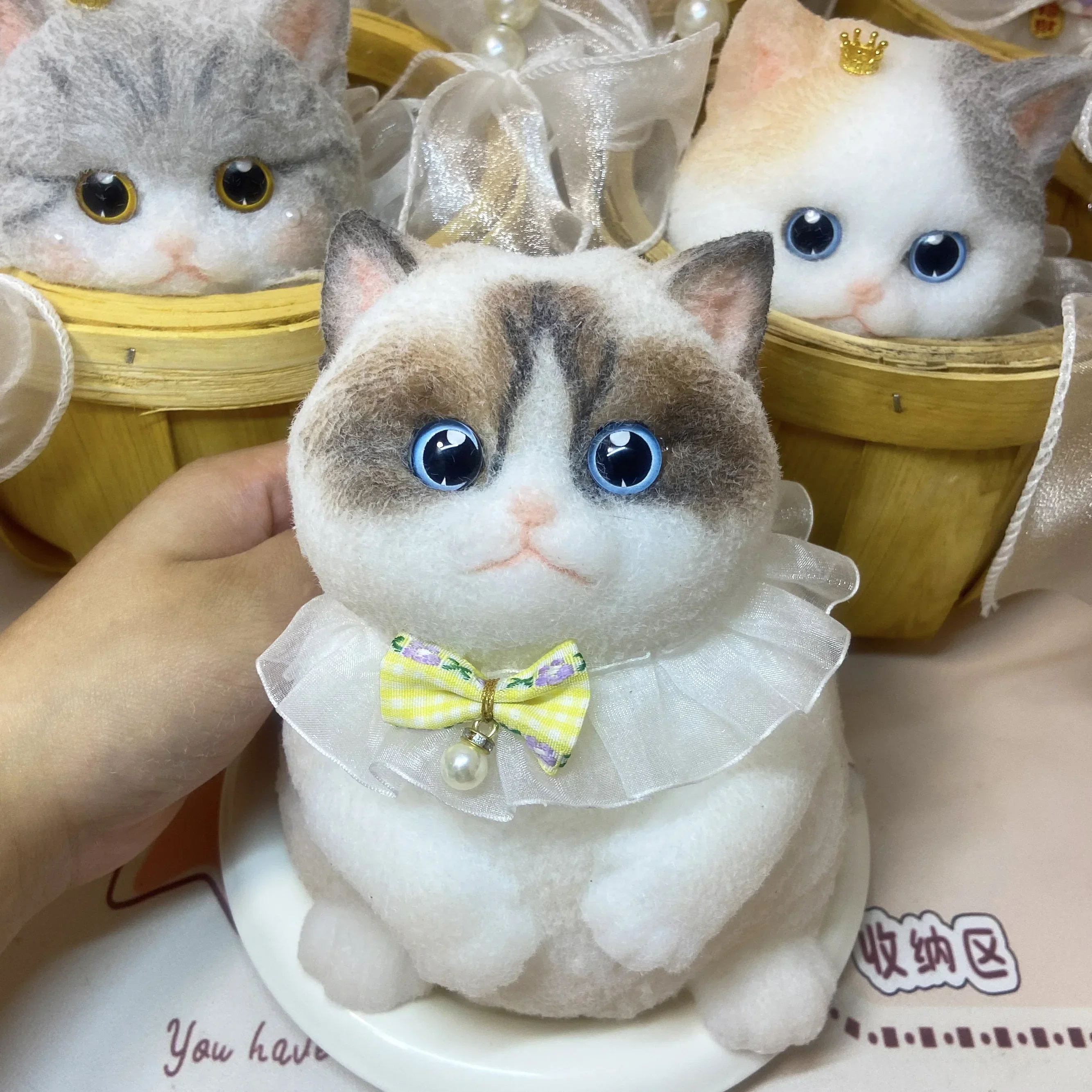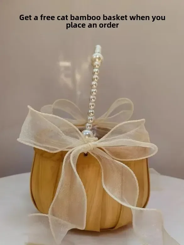 Simulation Silicone Cat Soft Rebound Handmade Toy with Bamboo Basket Bionic Kitten Birthday Gifts Ornament