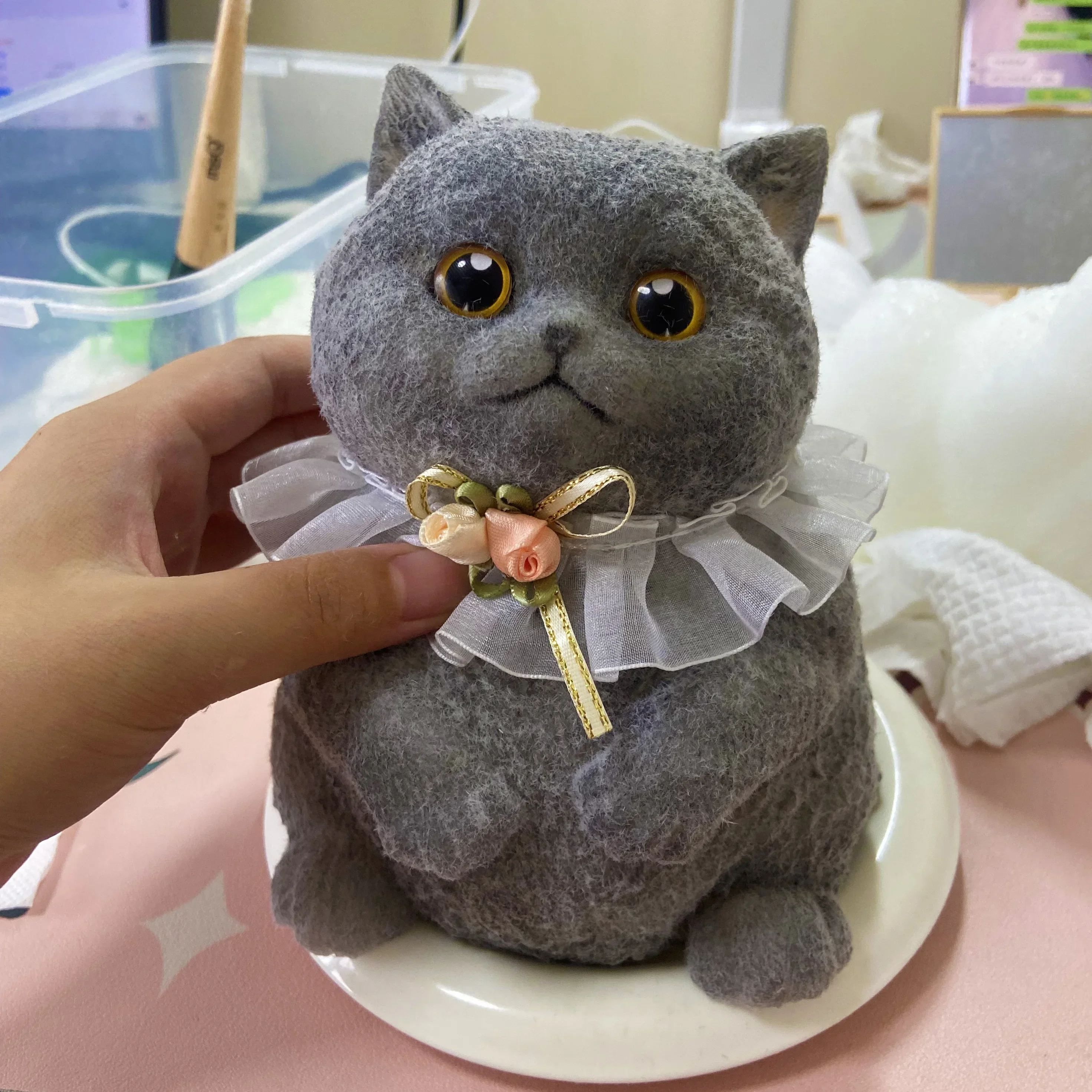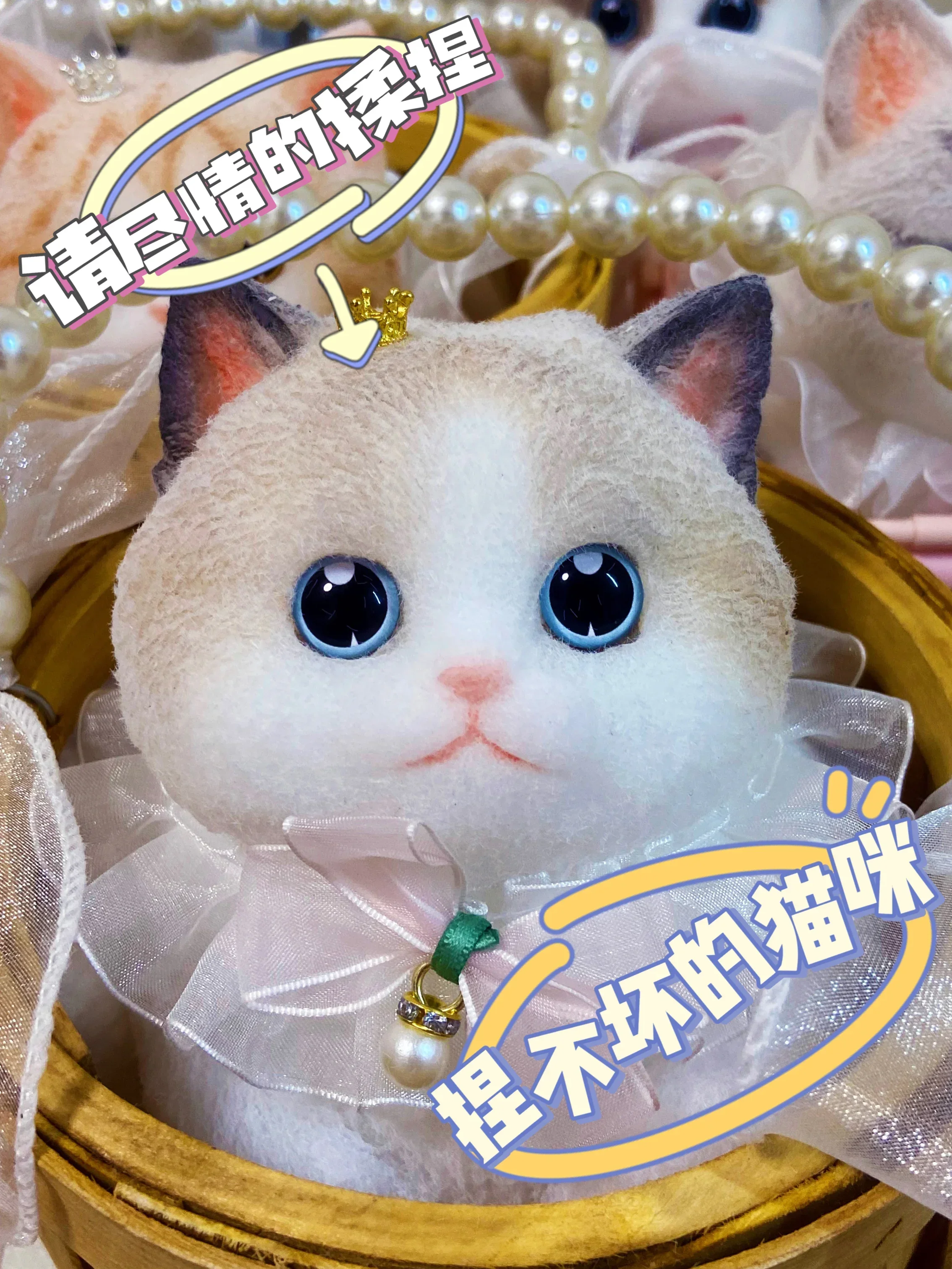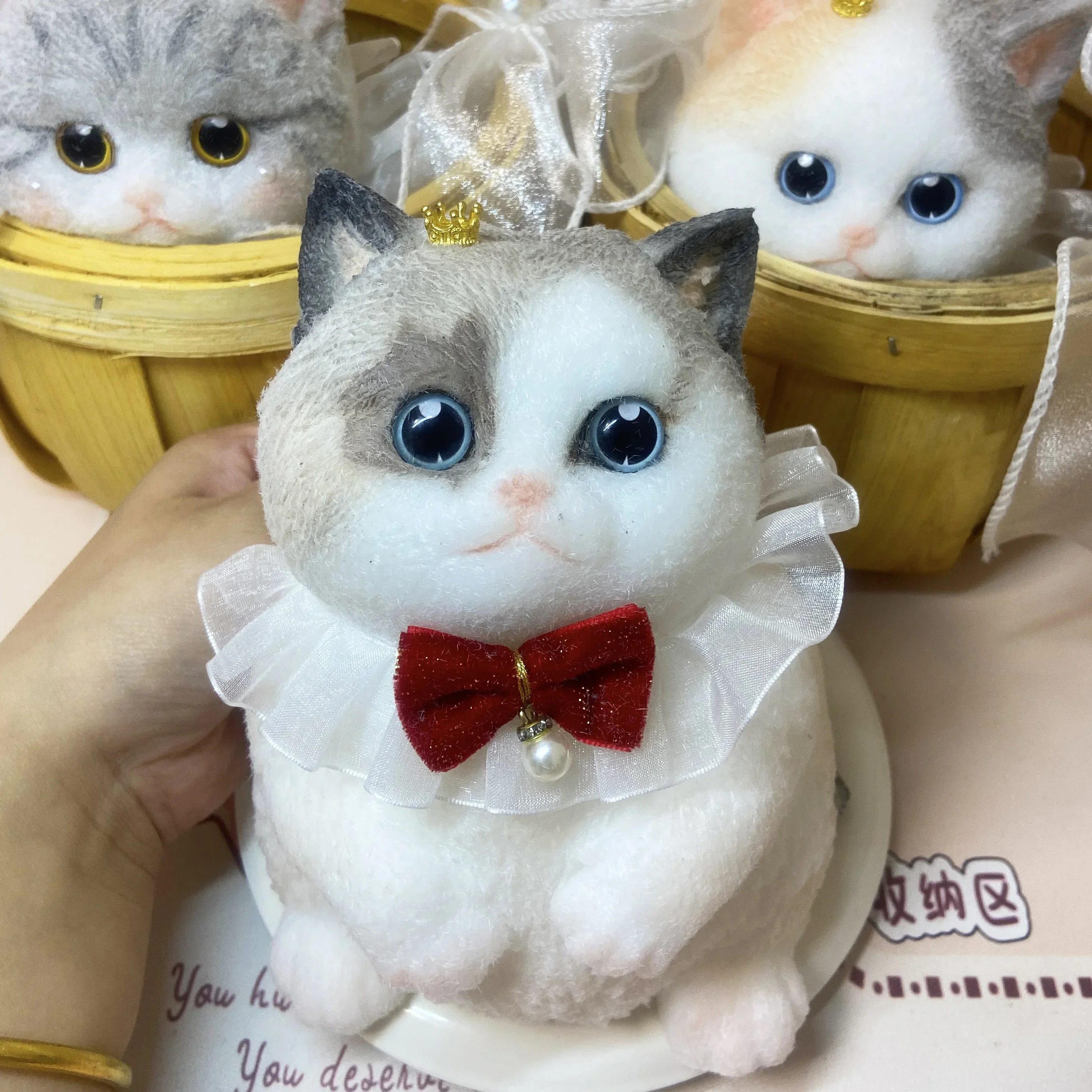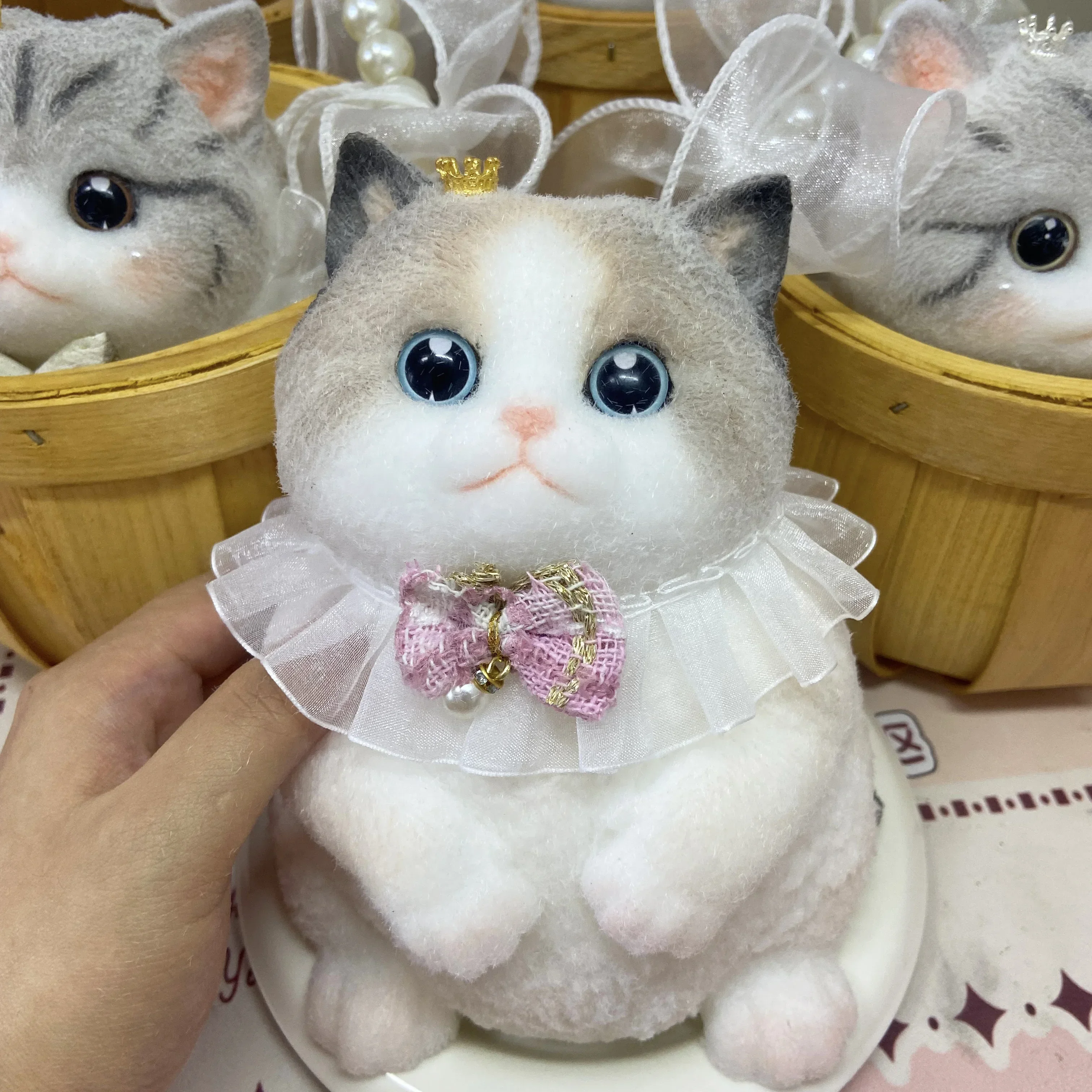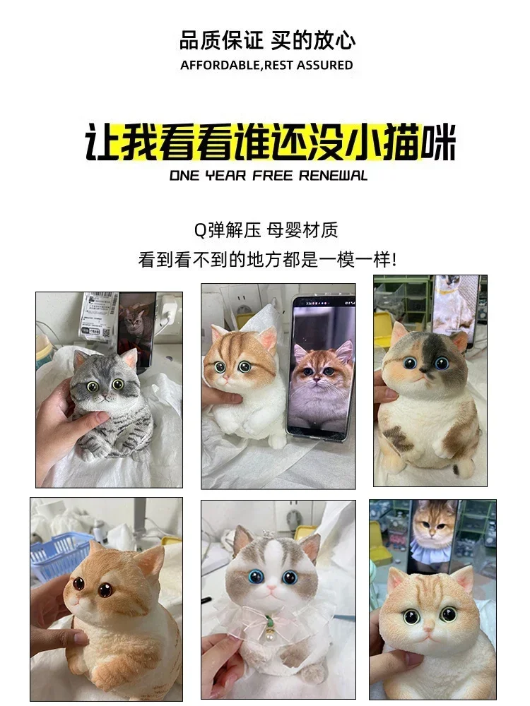 17cm Simulation Silicone Cat Soft Rebound Handmade Toy with Bamboo Basket Bionic Kitten Birthday Gifts Ornament