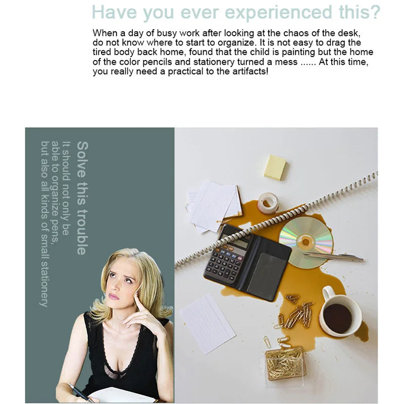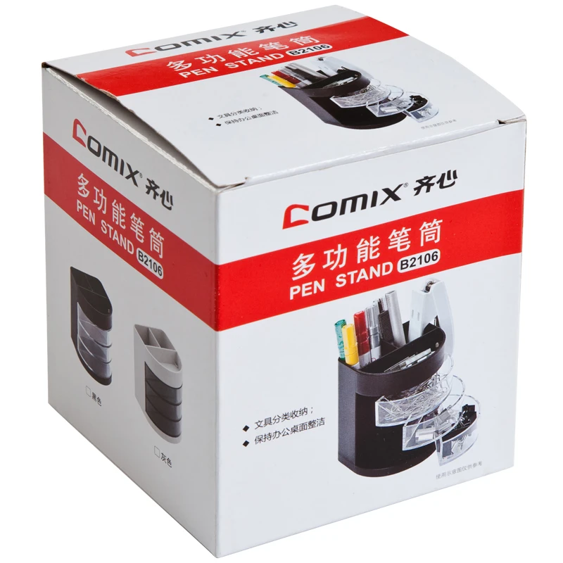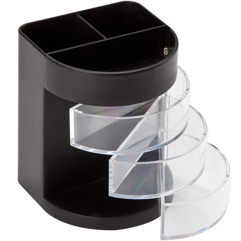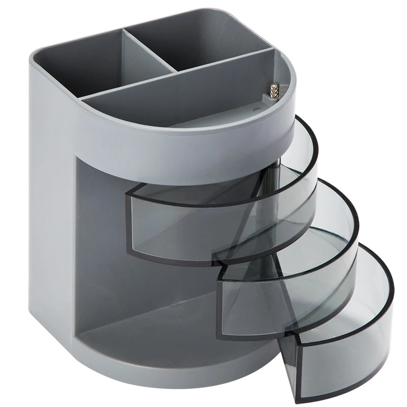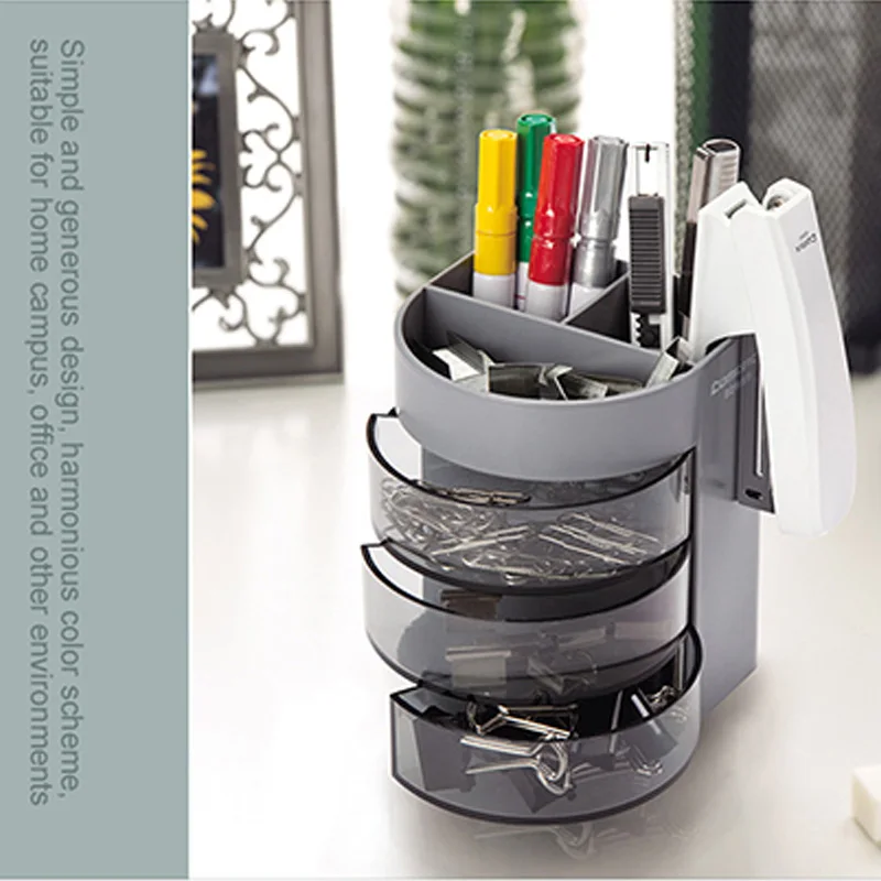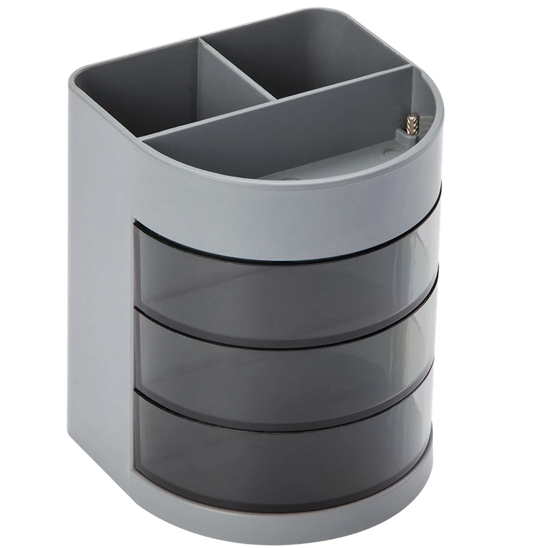1pc Pen Holder with 3 Rotatable Arc Drawers 3 Compartments Pencil Holder Desktop Storage School Office Supplies