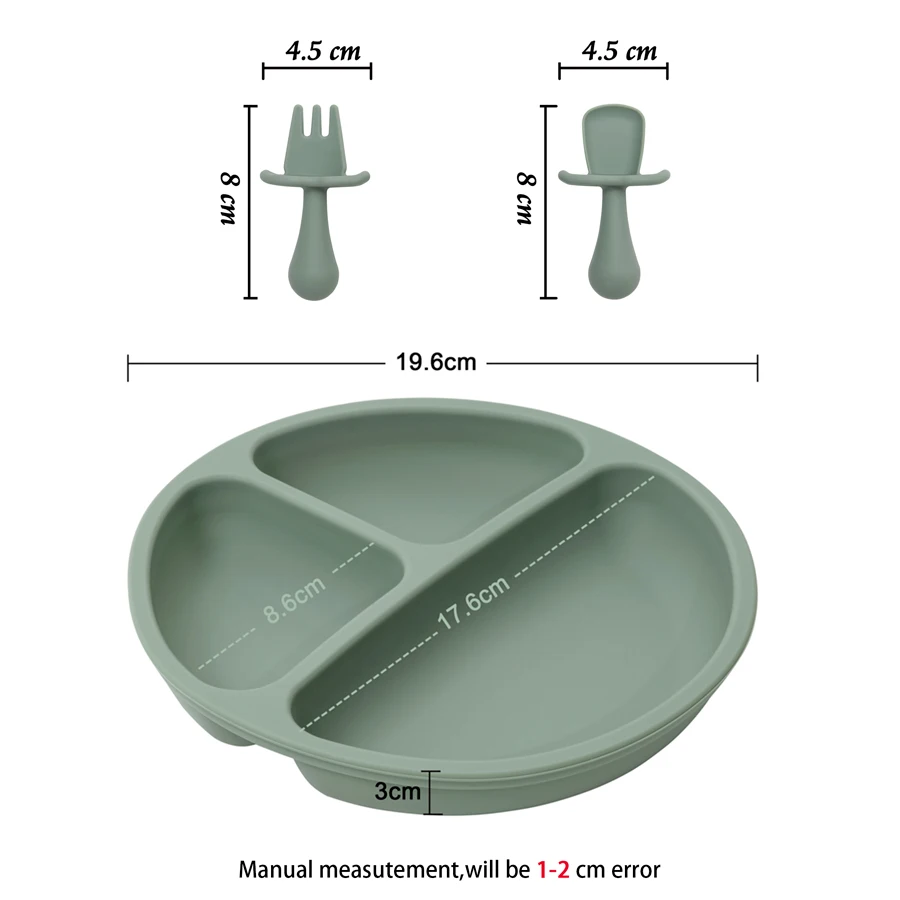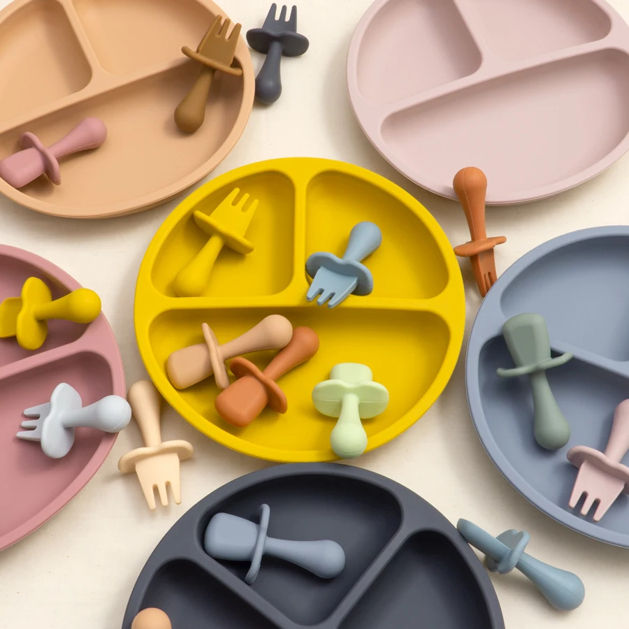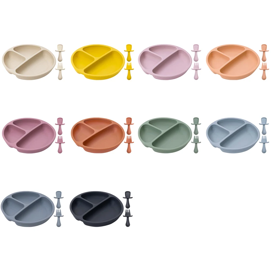 2024 New Colors Kids Divider Plate Training Fork Spoon Set Food Grade Silicone Material Newborn Essentials Baby Shower Gifts