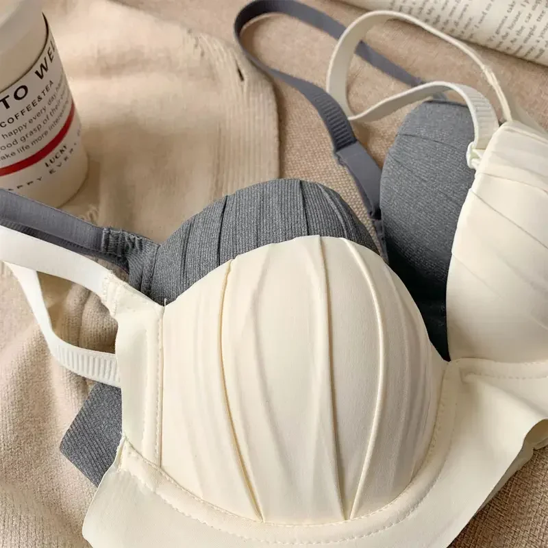 2024 New Pleated Bras Push Up Bra Small Chest No Steel Ring Wirelss Soft Bra Solid Color Sweet Seamless Bra