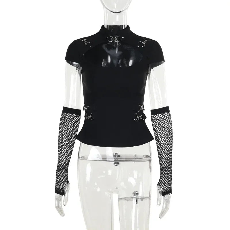 2025 New Women Vintage Punk Tees Dark Academia Gothic Hollow Out Short Sleeve Crop Tee Tops Streetwear Y2K Grunge Indie Clothes