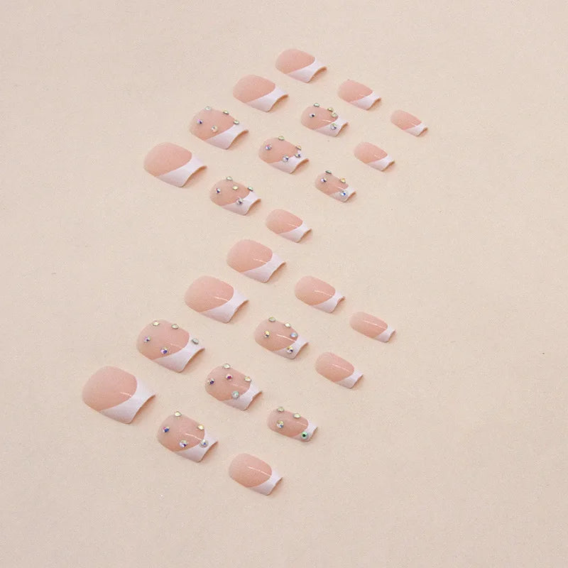 24pcs Short Ballet White Simple French Tip Sweet Coffin Press on Nails Set Cheap Girls Summer Square Decorated False Nail Art