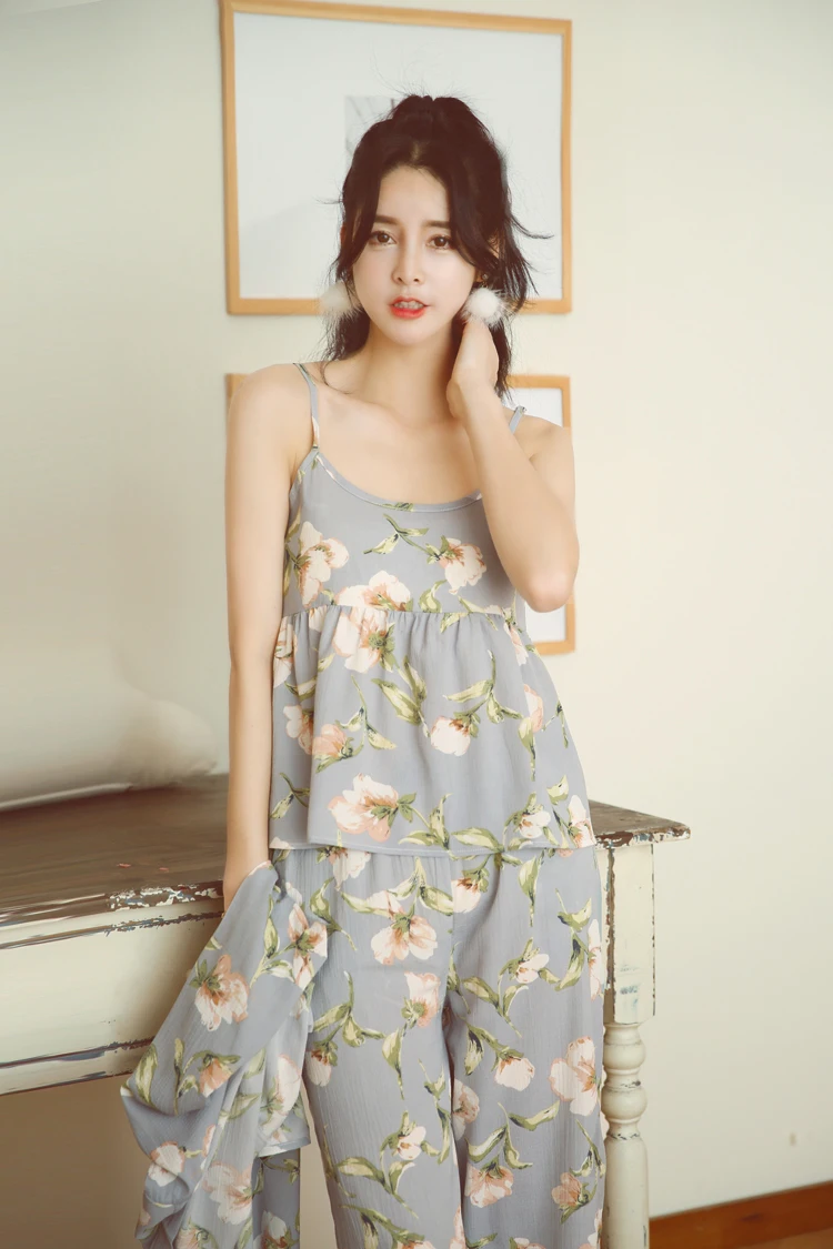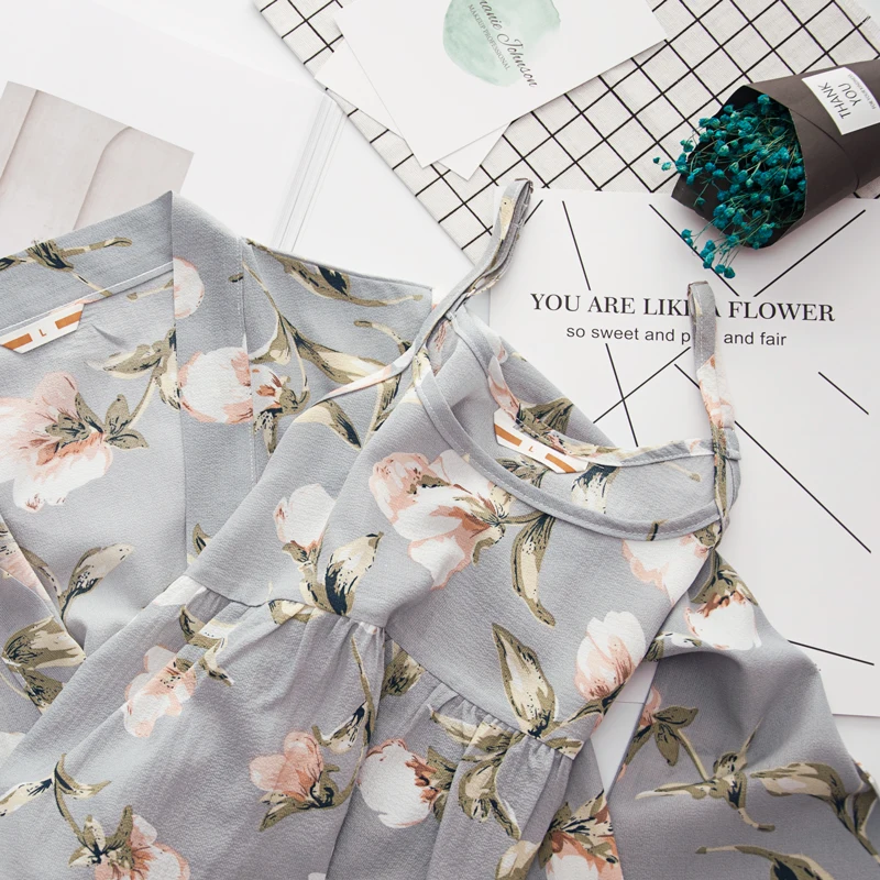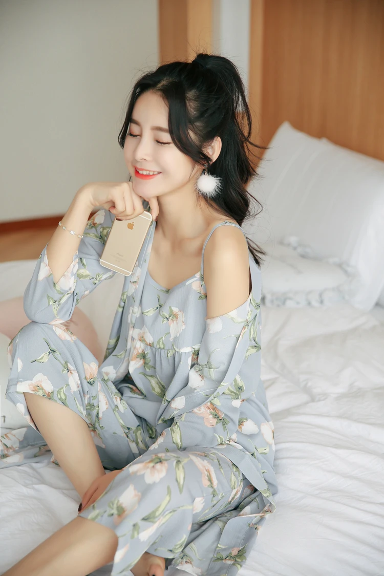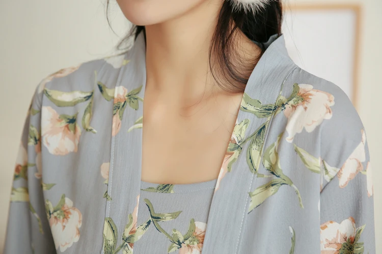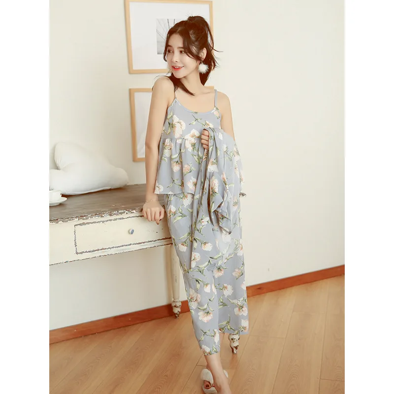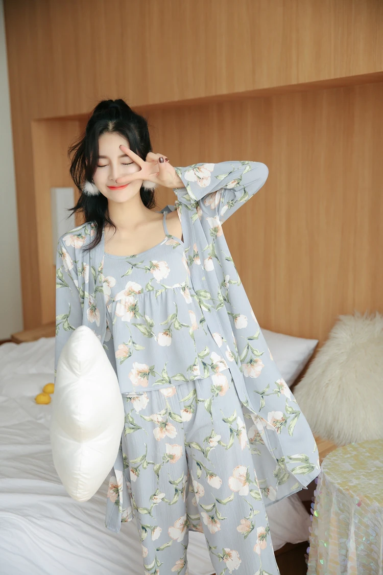3 Pieces Women Japan Kimono Pajamas Cotton Sleepwear Pijama Soft Home Clothing Floral Printing Sleep Lounge Pyjama Pyjamas Set