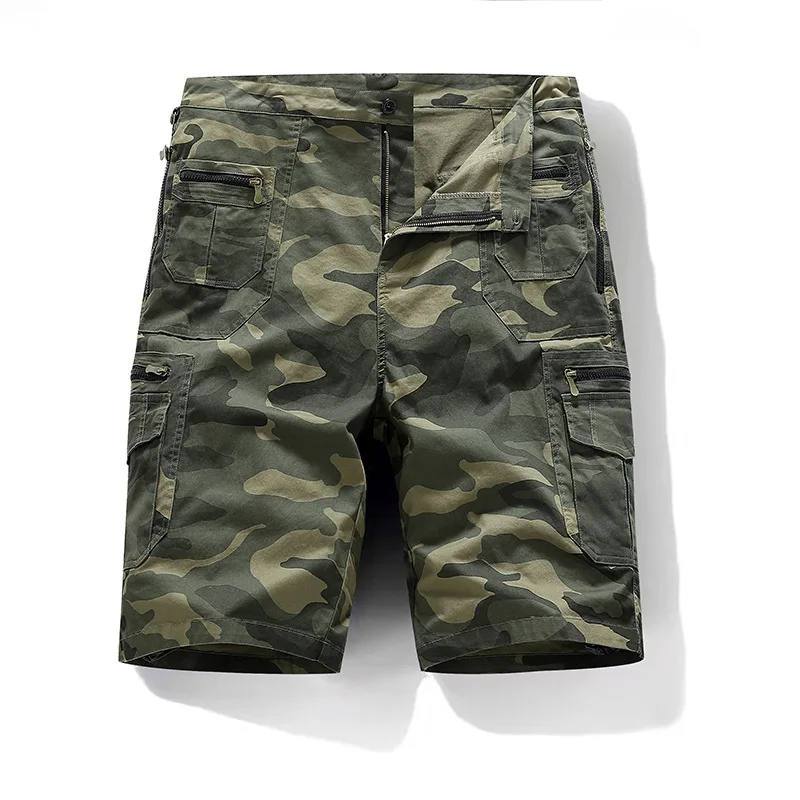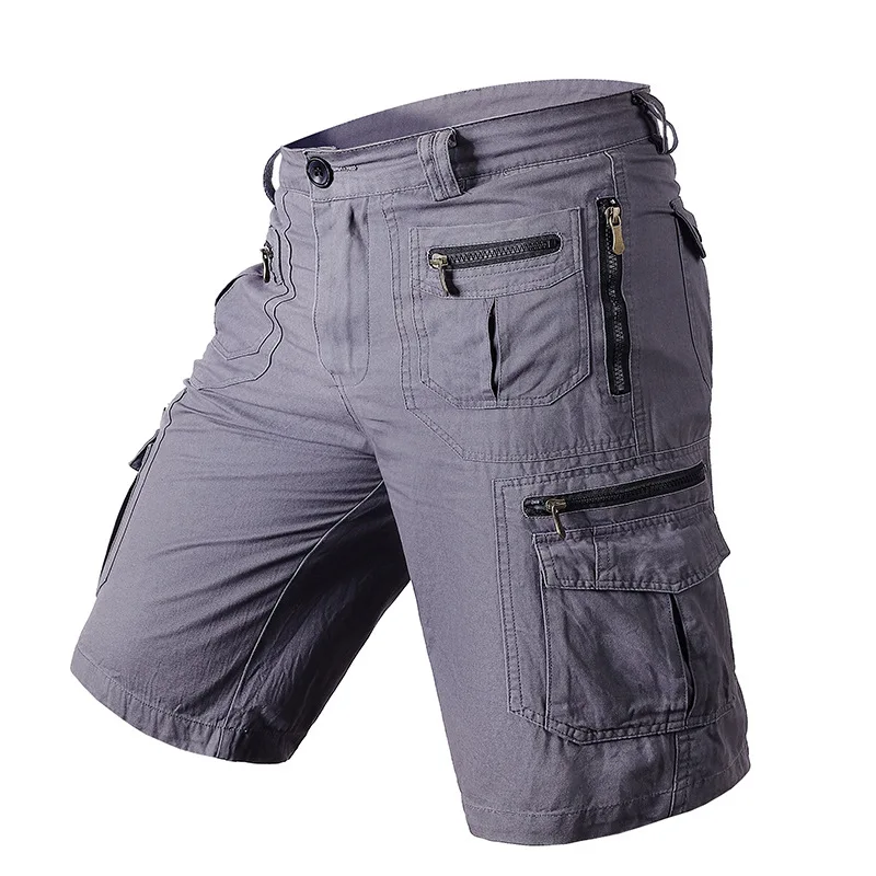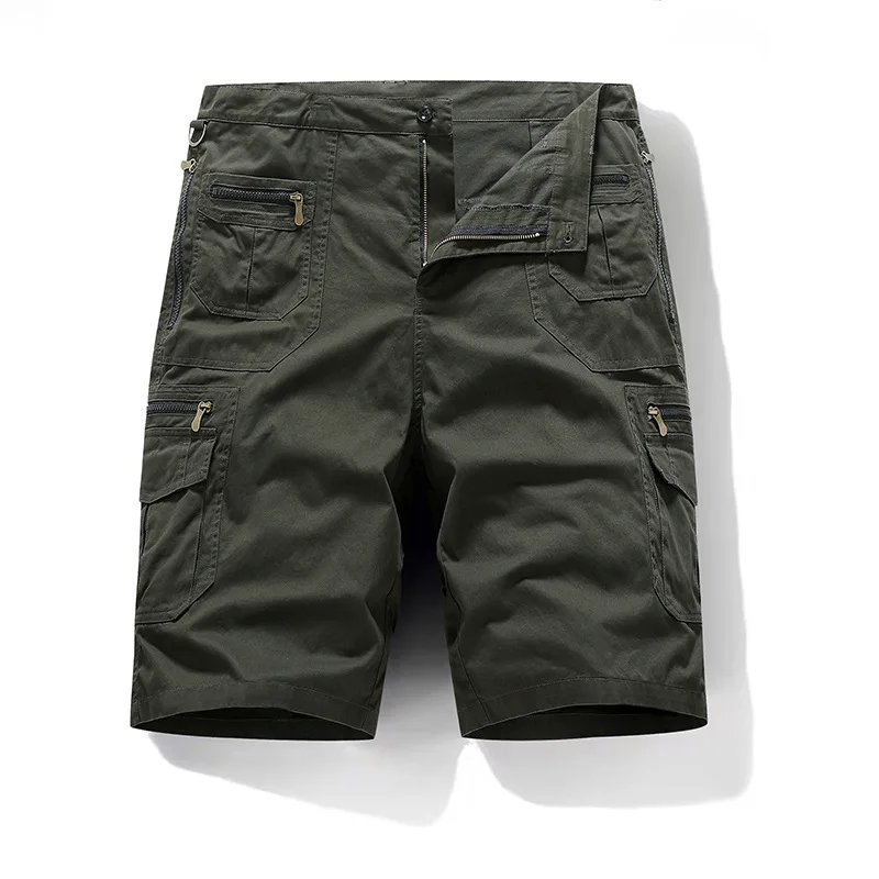 5XL Mens Work wear Cargo Shorts Summer Pure Cotton Loose Straight Multi-pockets Casual Knee Length Hiking Sports Shorts Male Plus Size