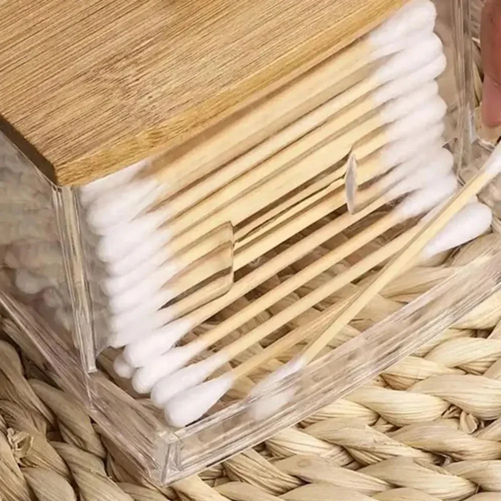 Acrylic Cotton Swab Storage Box, Transparent Makeup Organizer for Bathroom & Bedroom, 1 Piece Cotton Swab Holder