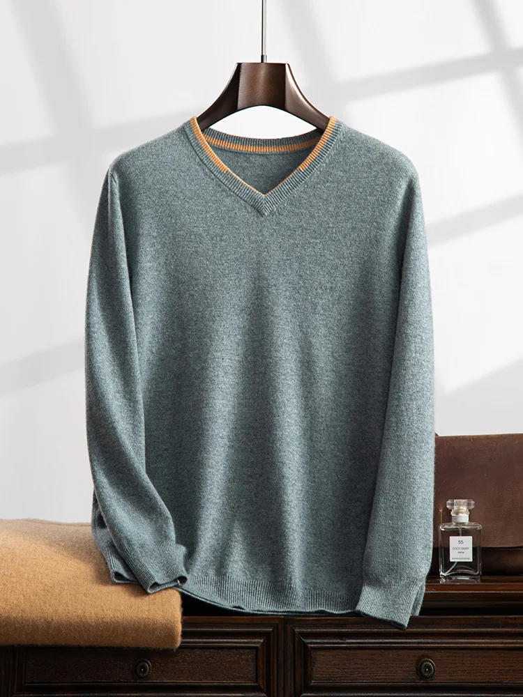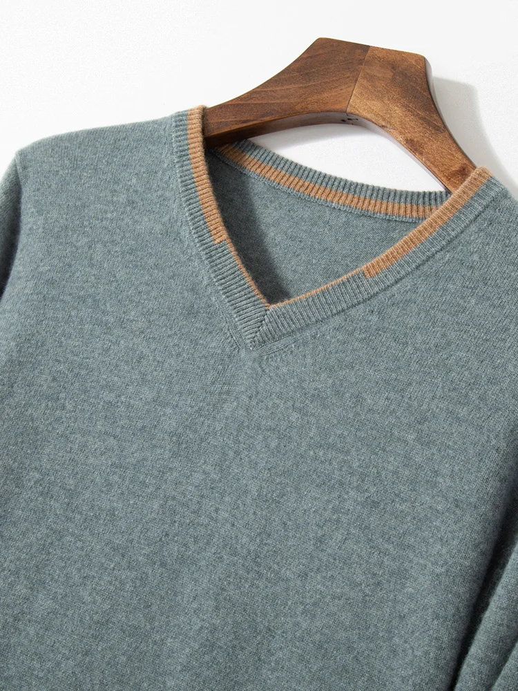 ANGEL Men's 100% Cashmere Sweater Long Sleeve V-Neck Pullovers Loose High-End Knit Shirt Casual Tops New Autumn Winter Clothing