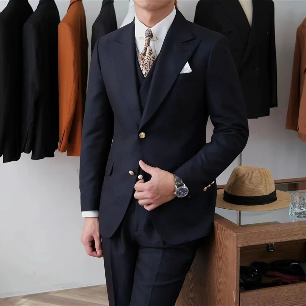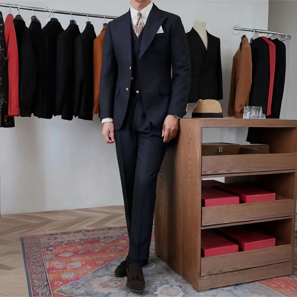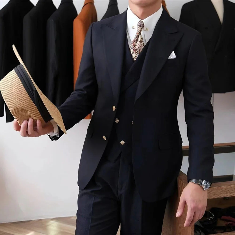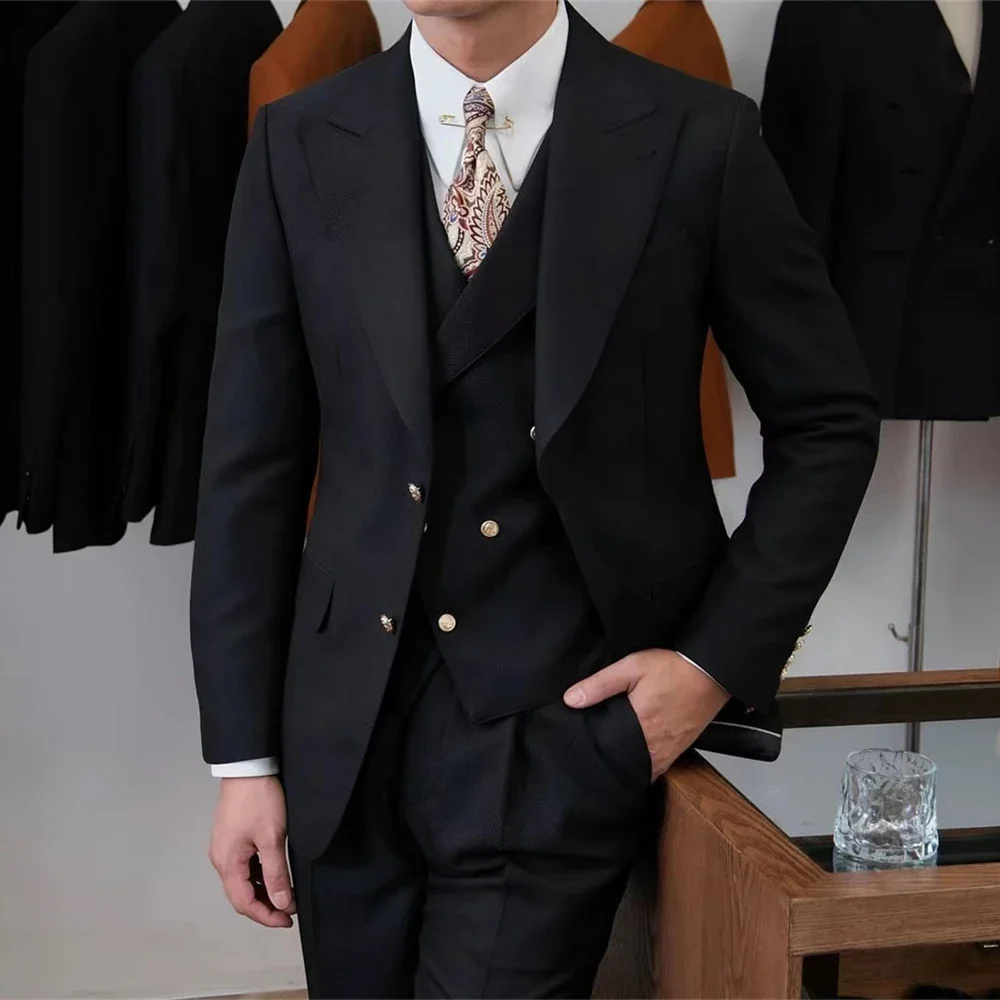 Black Men Suit Formal Business Blazer Wedding Groom Tuxedo Daily Slim Fit 3 Piece Jacket Vest Pants Terno Masculino