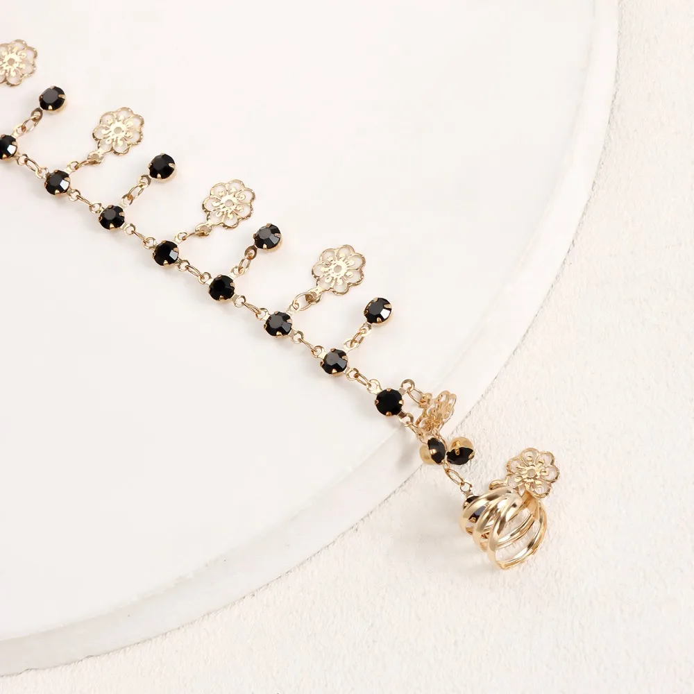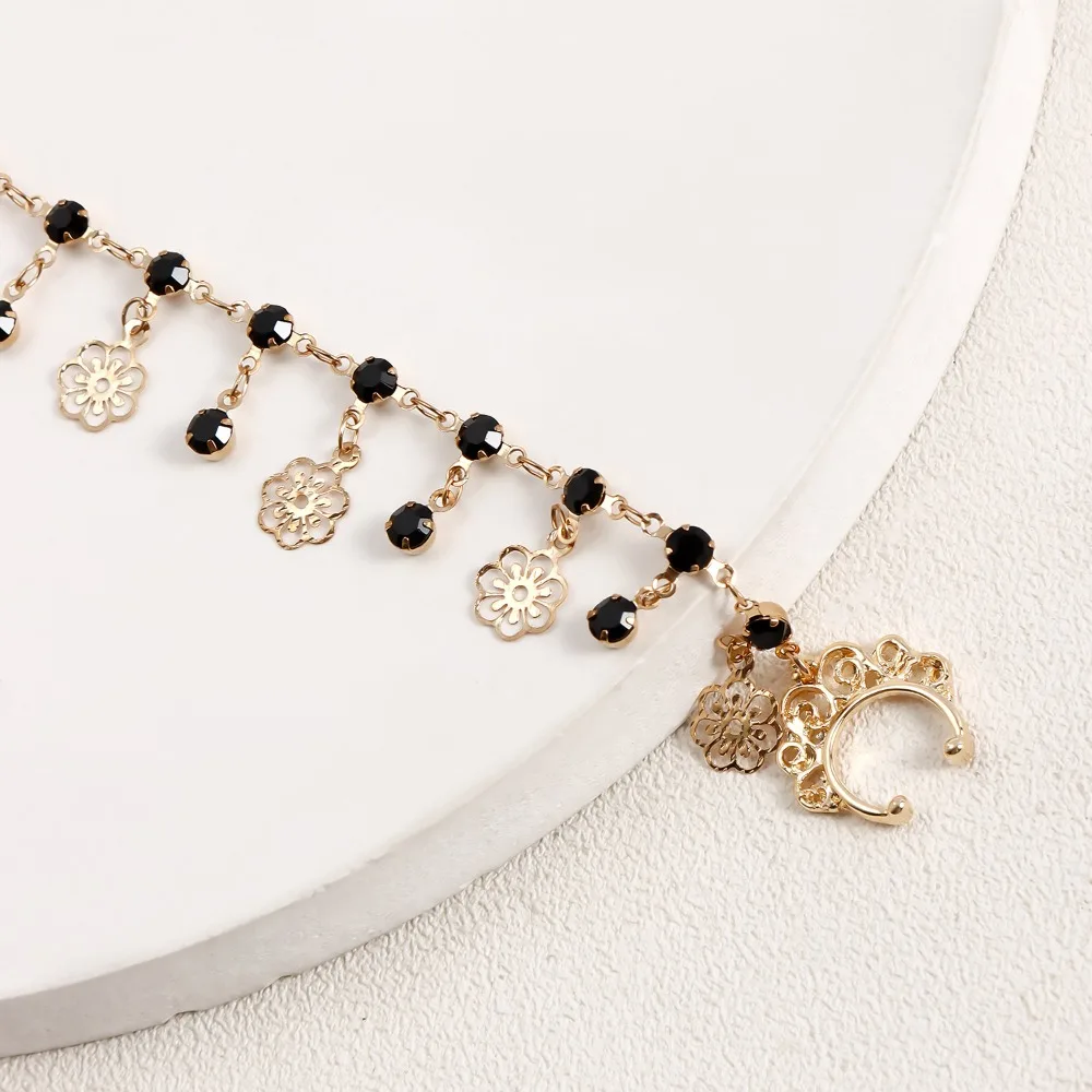 Body Jewelry Earring with Nose Ring Fashion Trendy Metal Nose Clip Gold& Black Imitation Crystal Long Chain Tassel Nose Clip